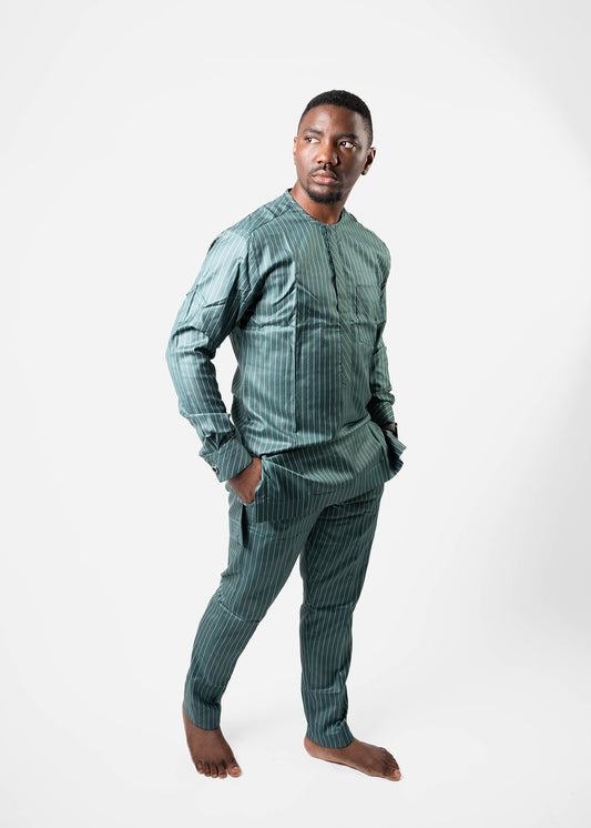 Green and White Kaftan with Long Sleeves