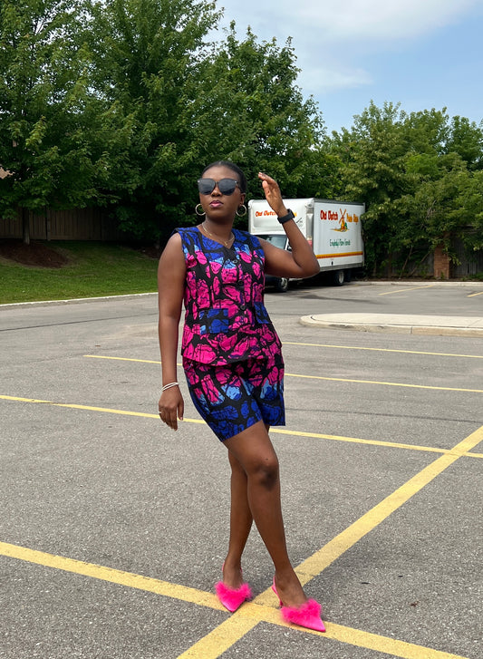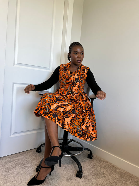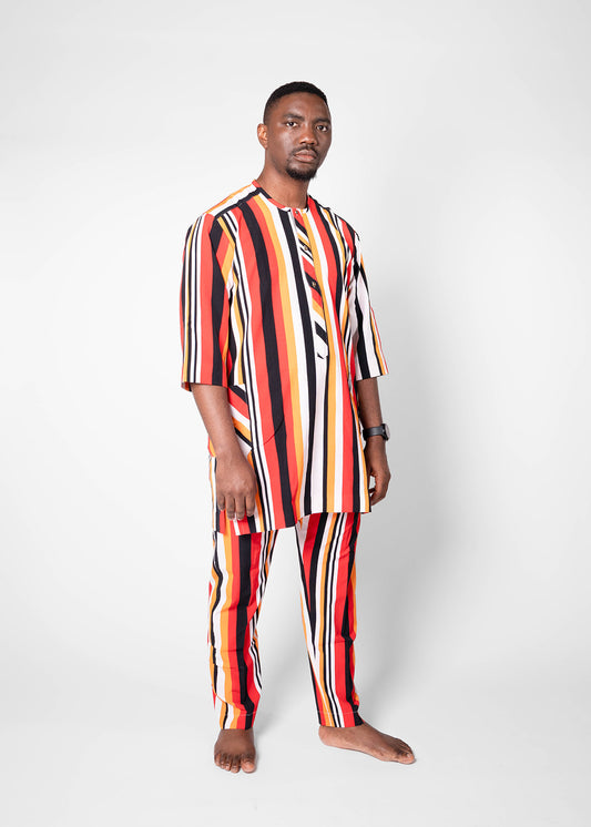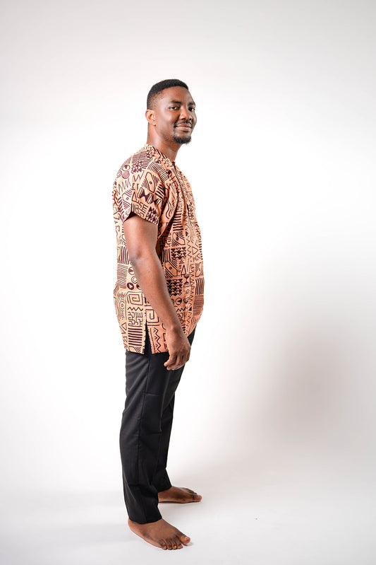 African Dansiki with Peach and Brown Ankara