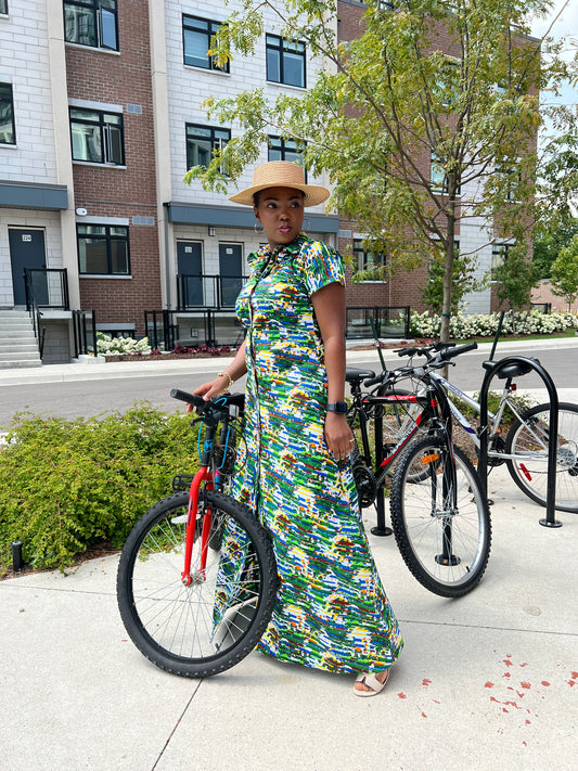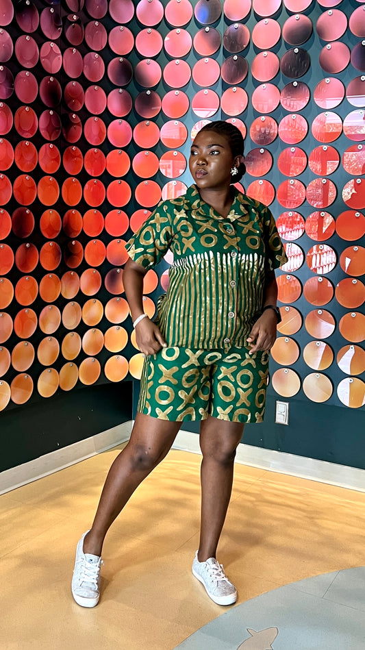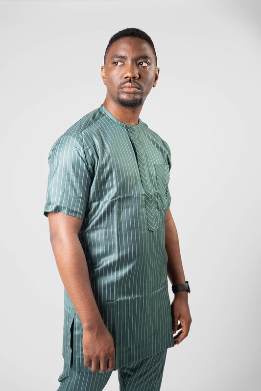 Green and White Kaftan with Short Sleeves