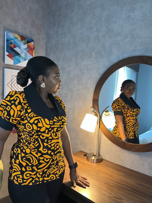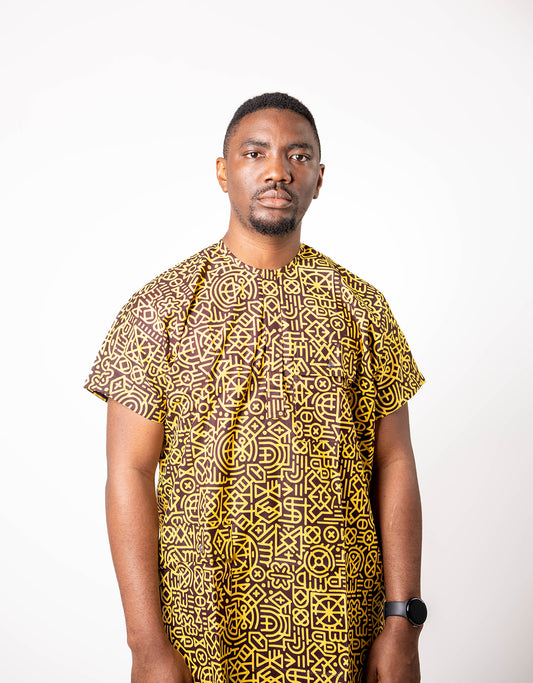 African Dansiki with Yellow-Black Ankara